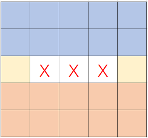 $k < \left\lceil\frac{1}{2}n\right\rceil$ 时一定有白色格三连?