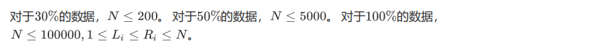 第一行一个整数N,表示A部点数。 接下来N行,每行两个整数Li,Ri表示对应的区间。
