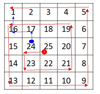 5 5 1 2 3 4 5 16 17 18 19 6 15 24 25 20 7 14 23 22 21 8 13 12 11 10 9
