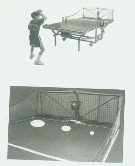 第49届世界锦标赛在广州召开,时间从2月24日至3月2日,这对于乒乓球球迷们来说是个大好的机会。TZD约了中山大学的其它几位球迷去观看第一天的比赛,这天当他们到达体育馆时,离比赛还有1个小时,因此他们决定四处蹓跶一下。他们在不远的地方发现一些小孩在一个球桌上玩游戏,游戏是这样的:玩家站在球桌的一端,在球桌的另一端有一个机器一个接一个地为玩家发球,玩家只管击球即可。(如图所示)