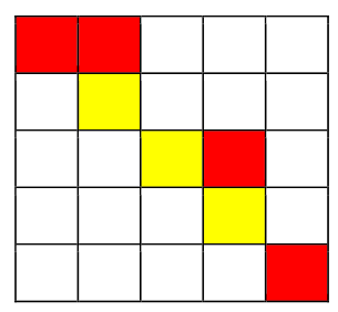 有一个$m × m$的棋盘,棋盘上每一个格子可能是红色、黄色或没有任何颜色的。你现在要从棋盘的最左上角走到棋盘的最右下角。