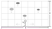 当馅饼在某一时刻恰好到达游戏者所在的格子中,游戏者就收集到了这块馅饼。当馅饼落在一个游戏者不在的格子里时该馅饼就消失。