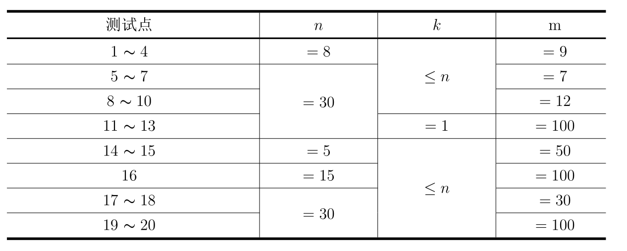 对所有测试点保证$1\leq k\leq n\leq 30, 0\leq m\leq 100,1\leq v_i<998244353$。