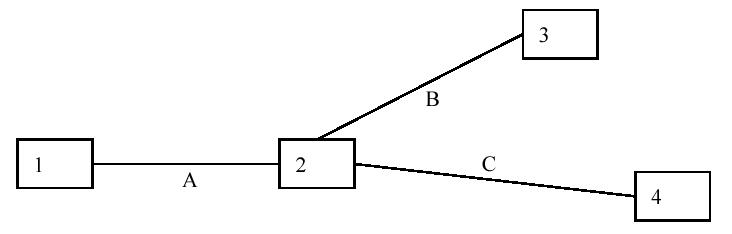 例如,下图就是Magic Land的一个可能格局(4个城市用数字编号,3条公路用字母编号):