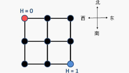 小Z还测量得到这个城市西北角的交叉路口海拔为0,东南角的交叉路口海拔为1(如上图所示),但其它交叉路口的海拔高度都无法得知。小Z想知道在最理想的情况下(即你可以任意假设其他路口的海拔高度),每天上班高峰期间所有人爬坡消耗的总体力和的最小值。