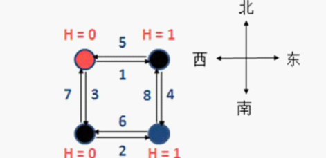 接下来4n(n + 1)行,每行包含一个非负整数分别表示每一条道路每一个方向的人流量信息。输入顺序:n(n + 1)个数表示所有从西到东方向的人流量,然后n(n + 1)个数表示所有从北到南方向的人流量,n(n + 1)个数表示所有从东到西方向的人流量,最后是n(n + 1)个数表示所有从南到北方向的人流量。对于每一个方向,输入顺序按照起点由北向南,若南北方向相同时由西到东的顺序给出(参见样例输入)。