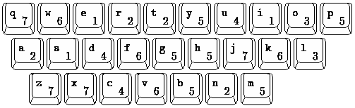 随后的每一行是由文件lgame.dict中查到的具有这个得分的所有的词和或词对(word pairs)(子任务B)。要利用图中给定的字母的值。