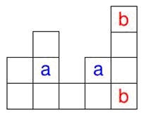 上图是一张合法的棋盘,每列高度分别为2,3,1,2,4,而且两个b可以互相攻击,但是a不会互相攻击。