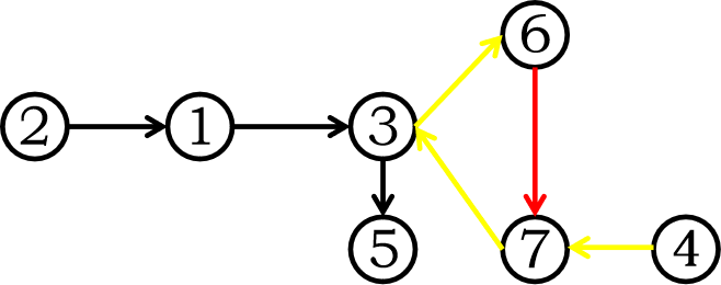 从$1\rightarrow 3\rightarrow 6\rightarrow 7$,需要换乘$2$次。