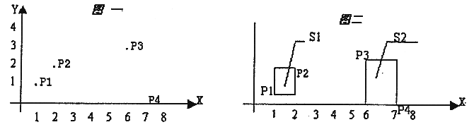 这些点可以用 $k$ 个矩形全部覆盖,矩形的边平行于坐标轴。当 $k=2$ 时,可用如图二的两个矩形 $s_l,s_2$ 覆盖,$s_1,s_2$ 面积和为 $4$。问题是当 $n$ 个点坐标和 $k$ 给出后,怎样才能使得覆盖所有点的 $k$ 个矩形的面积之和为最小呢。