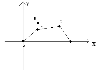上图中,$A,B,C,D,E$ 点为 $A$ 国城市,且目前都要保护,那么修建的防线就会是 $A-B-C-D$,花费也就是线段 $AB$ 的长度 $+$ 线段 $BC$ 的长度 $+$ 线段 $CD$ 的长度,如果,这个时候撤销 $B$ 点的保护,那么防线变成下图