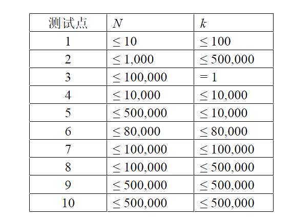 总共10个测试点,数据范围满足: