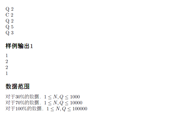 对于50% 的数据,1<=N,Q<=100000,且数据均为官方数据.