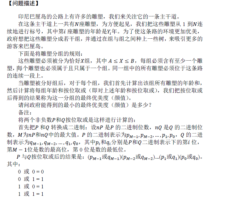 | 题目名称 | 1982. [APIO2015]巴厘岛的雕塑 |