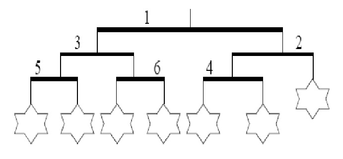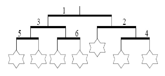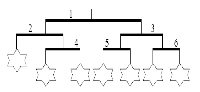 如果杆i下面挂有其它杆,则这些杆的编号将严格大于i。杆1位于风铃的顶部。