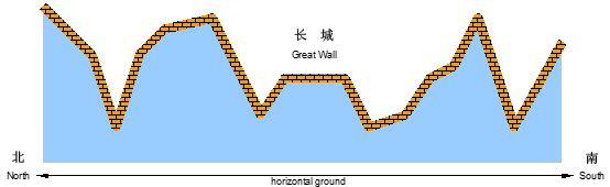 现在如图1所示,若水平为南北方向、垂直为海拔高度方向,假设长城就是依次相联的一系列线段,而且在此范围内的任一垂直线与这些线段有且仅有唯一的交点。
