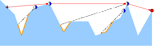 另外,为避免歧义,我们在这里约定,与某个烽火台的视线刚好相切的区域都认为可以被该烽火台所监视。以图3中的长城为例,若A、B、C、D点均共线,且在D点设置一处烽火台,则A、B、C以及线段BC上的任何一点都在该烽火台的监视范围之内。