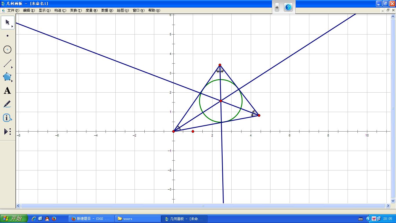 给定第一象限内两个点,求该两点和原点构成的三角形内心坐标