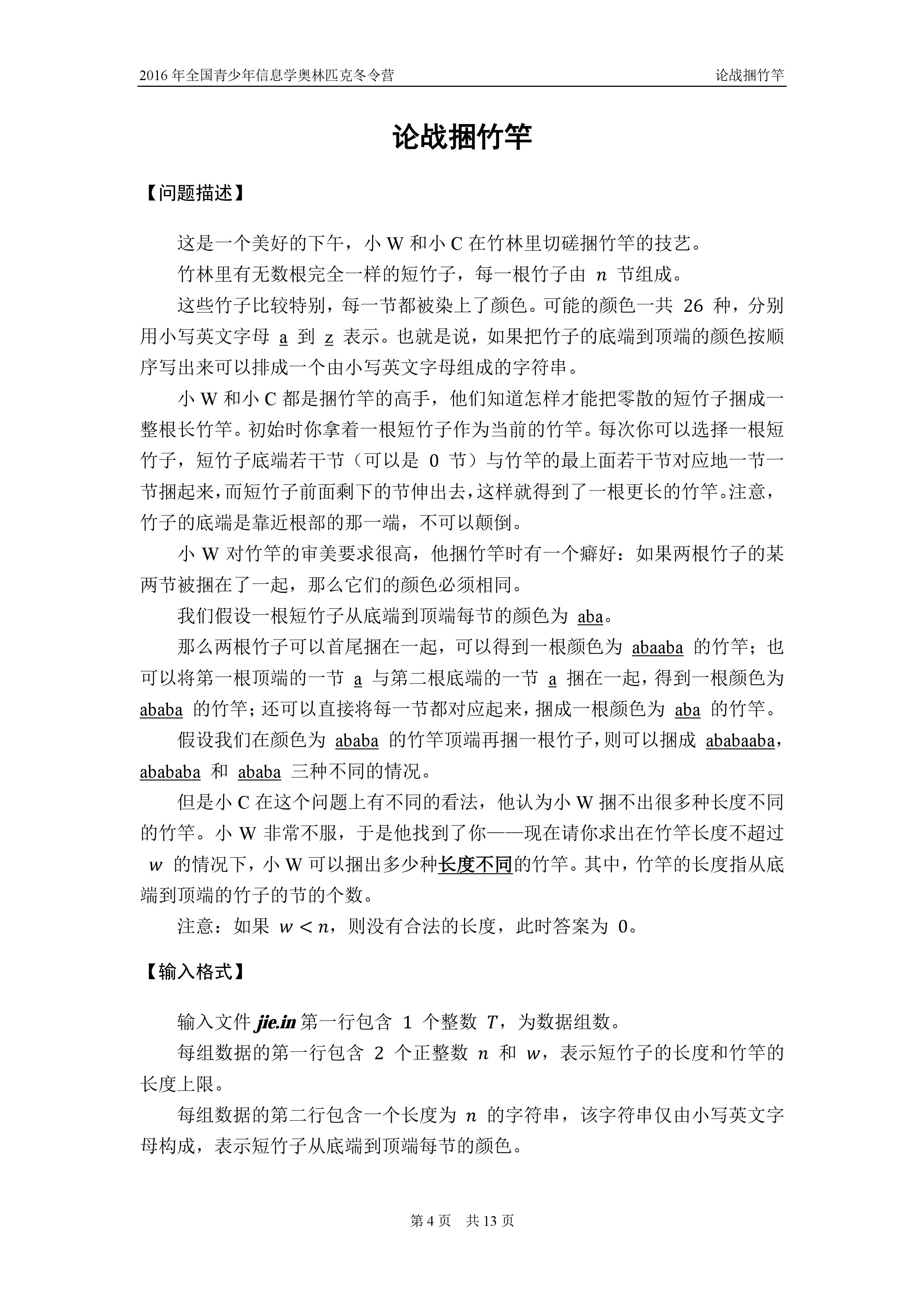 | 题目名称 | 2148. [WC 2016] 论战捆竹竿 |