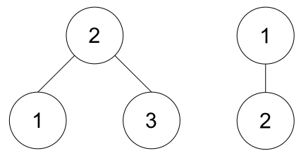 对于第一个测试点,我们删除第一棵树的 $1$ 号节点。此时剩余的树和输入第二棵树均为包含两个节点的有根树,因而输出为 Yes。