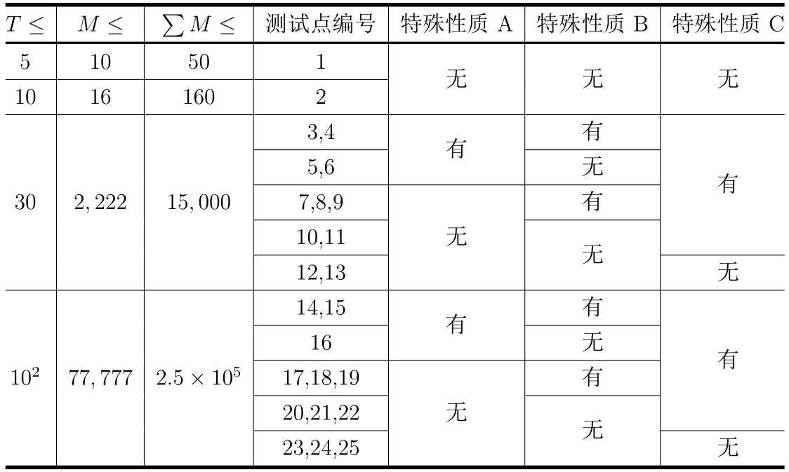 注意:为了阅读方便,测试点编号在表格中的第四列。