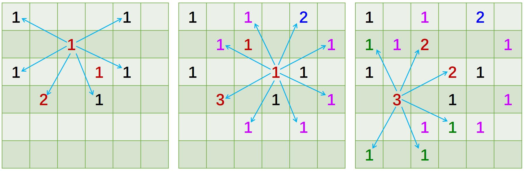 ($2$)每个暗哨会使其$8$个防御区域的防御指数增加$1$;