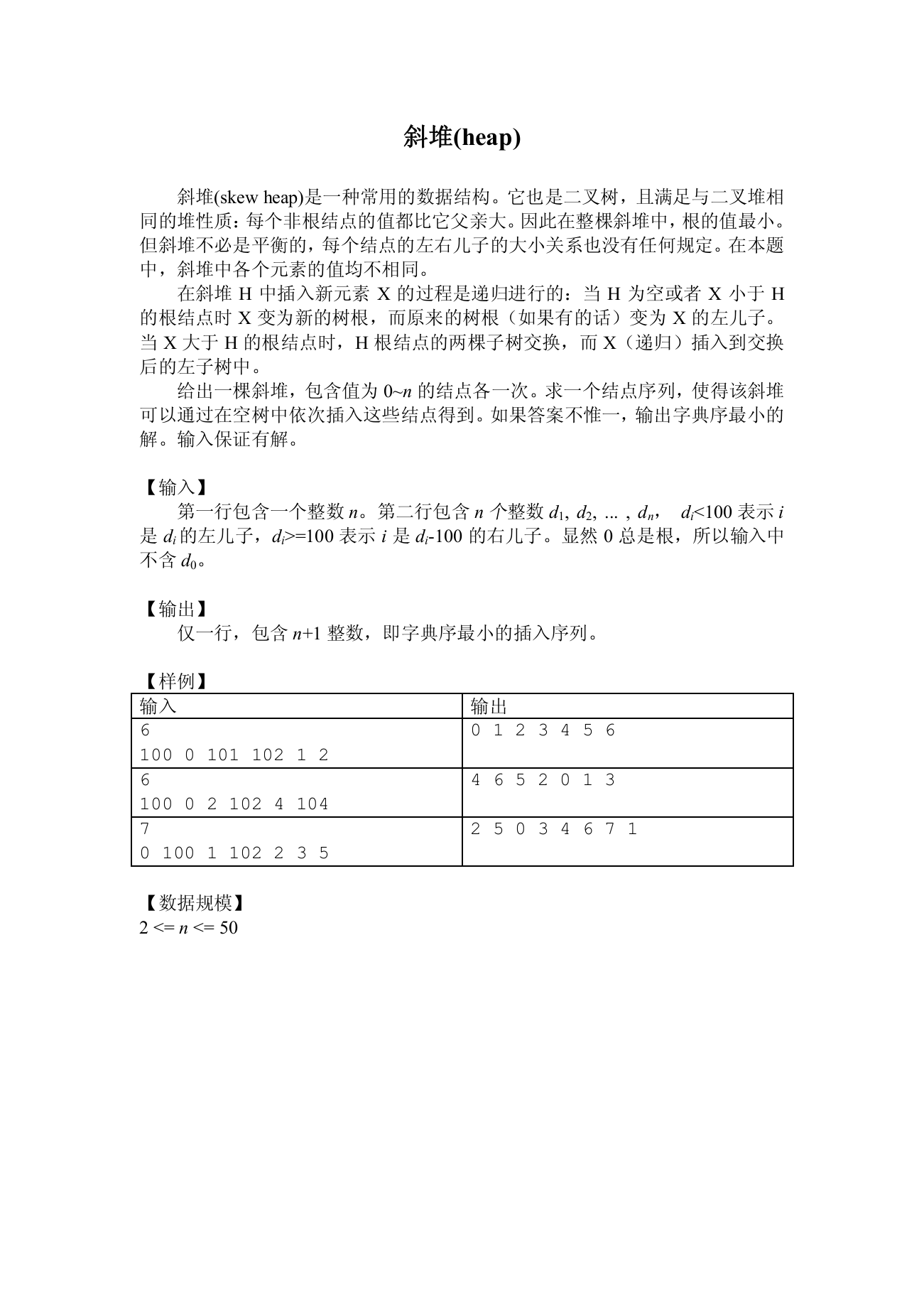 | 题目名称 | 1331. [SCOI 2008] 斜堆 |