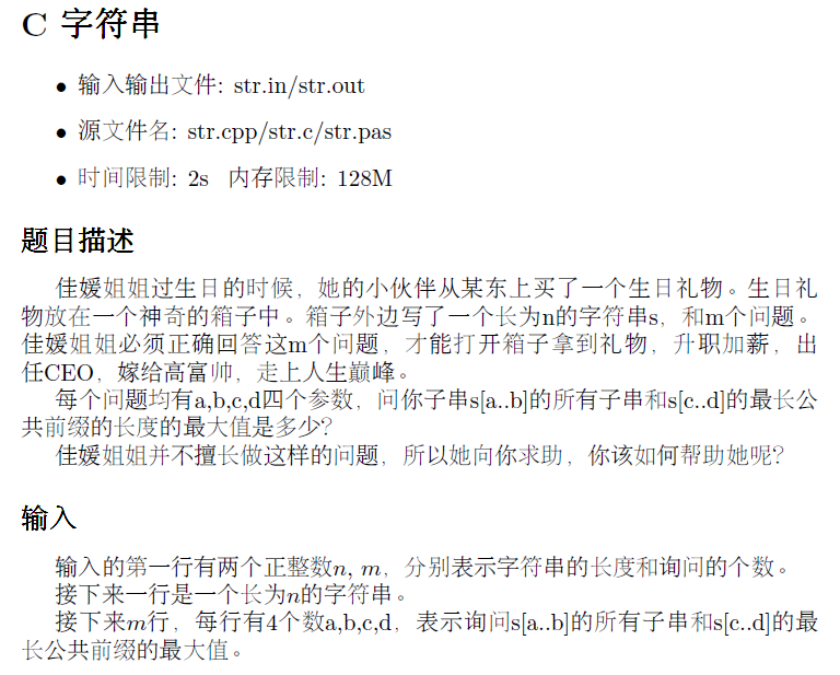 | 题目名称 | 2277. [HEOI 2016] 字符串 |