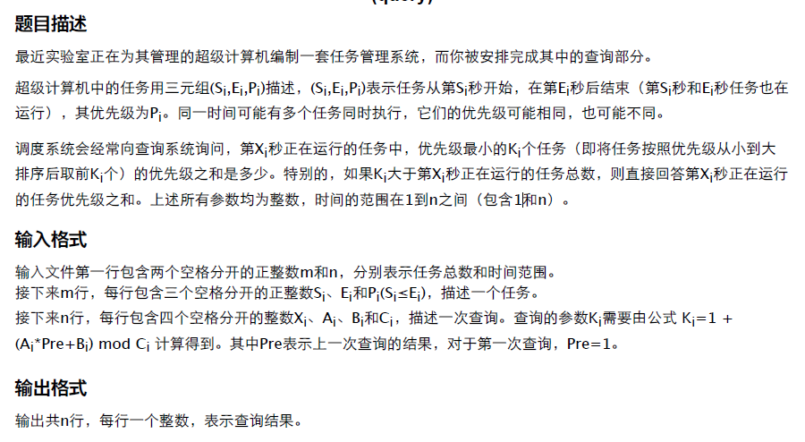 | 题目名称 | 1936. [CQOI2015]任务查询系统 |