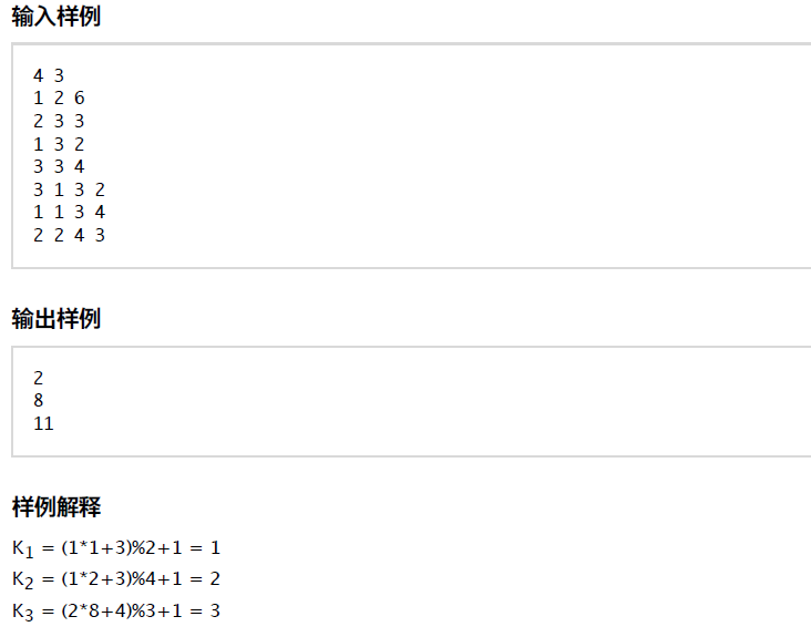 4 3 1 2 6 2 3 3 1 3 2 3 3 4 3 1 3 2 1 1 3 4 2 2 4 3 本机亲测是对的,交上去就E个不停,也是醉了 | ||||