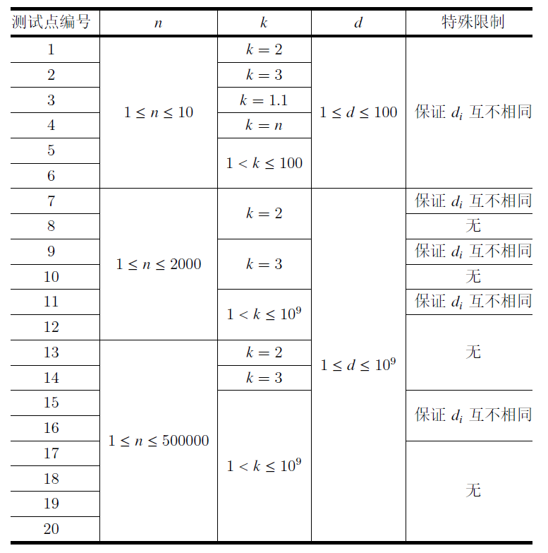 这一天,Konano 接到了一个任务,他需要给正在制作中的游戏《IIIDX》安排曲目的解锁顺序。游戏内共有 $n$ 首曲目,每首曲目都会有一个难度 $d$,游戏内第 $i$ 首曲目会在玩家 Pass 第 $\lfloor\frac{i}{k}\rfloor$ 首曲目后解锁($\lfloor x\rfloor$ 为下取整符号)若 $\lfloor\frac{i}{k}\rfloor = 0$,则说明这首曲目无需解锁。
