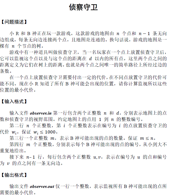 | 题目名称 | 2516. [JLOI&SHOI 2016] 侦察守卫 |