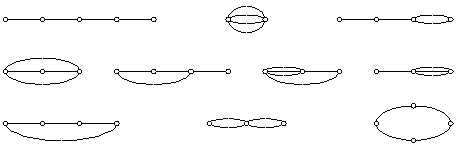 输入正整数 $N$,你的任务是统计有多少个 $n$ 条边的串并联网络。例如,$n=4$ 时有 $10$ 个,如下图: