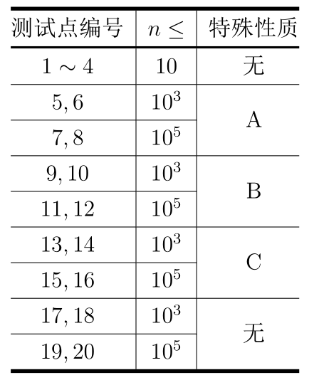 该样例共有 $10$ 组测试数据,其中第 $i(1 \leq i \leq 10)$ 组测试数据满足数据范围中描述的测试点 $2i - 1$ 的限制。