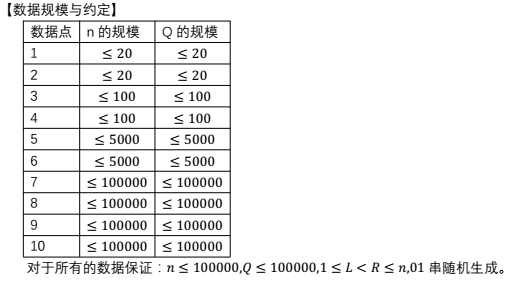 为了提高供给品质,你调查乐某个产业近来n个时期的供求关系平衡情况,每个时期的情况用0或1中的一个数字表示,于是这就是一个长度为n的01字符串S。为了更好的了解这一些数据,你需要解决一些询问,我们令data(l,r)表示:在字符串S中,起始位置在[l,r]之间的这些后缀之中,具有最长公共前缀的长度。