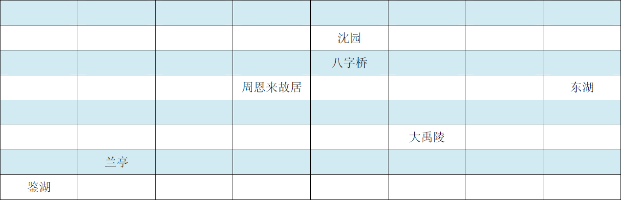 主办者将绍兴划分为 N 行M 列(N×M)个方块,如下图(8×8)
