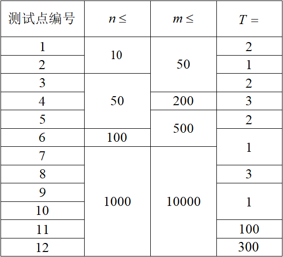 接下来是$T$组数据,每组数据的格式如下: