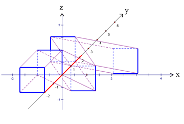 3.管道是由若干四棱柱拼接而成,每个四棱柱的两个底面都是边长为1的正方形,且这两个底面都平行于xoz平面。也就是说,对于管道的任何一个垂直于y轴的的截面,它都是正方形,只要知道右上角顶点的坐标(x,y,z)就可以知道正方形剩下三个点的坐标(x-1,y,z), (x,y,z-1), (x-1,y,z-1)。