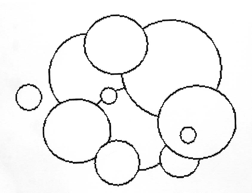 有 $n$ 个圆盘从天而降,后面落下的可以盖住前面的。最后按掉下的顺序,在平面上依次测得每个圆盘的圆心和半径,问下落完成后从上往下看,整个图形的周长是多少,即你可以看到的圆盘的轮廓的圆盘的轮廓总长.例如下图的黑色线条的总长度即为所求。