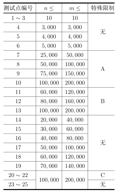 对于所有测试点:1≤n≤10^5,1≤m≤2×10^5,1≤$r_{i,1},r_{i,2},c_{i,1},c_{i,2}$≤n。