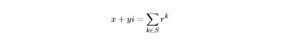 换句话说,我们将 x + yi 转换为 r 进制,每位上是 0 或者 1。其中为 1 的 位置的集合记做 S。