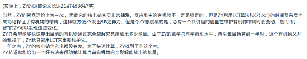 | 题目名称 | 2324. [HNSDFZ2016 #1] ZY的核电站 |
