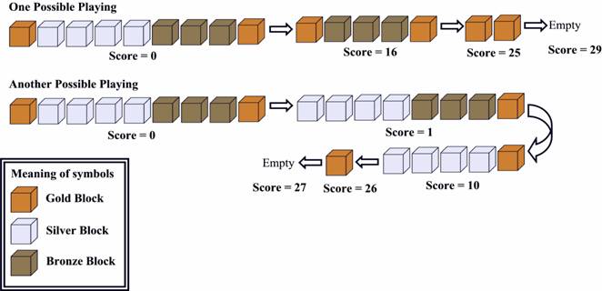 游戏规则如下:$n$个带颜色方格排成一列,相同颜色的方块连成一个区域(如果两个相邻方块颜色相同,则这两个方块属于同一区域。游戏时,你可以任选一个区域消去。设这个区域包含的方块数为$x$,则将得到$x^2$个分值。方块消去之后,其右边的所有方块就会向左移。虽然游戏很简单,但是要拿高分也很不容易。Jimmy希望你能找出得最高分的最佳方案,你能帮助他吗?