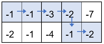 按上述走法,取到的数之和为(-1)+ (-1) + (-3) + (-2) + (-1) + (-2) = -10,可以证明为最大值。因此,请注意,取到的数之和的最大值也可能是负数。
