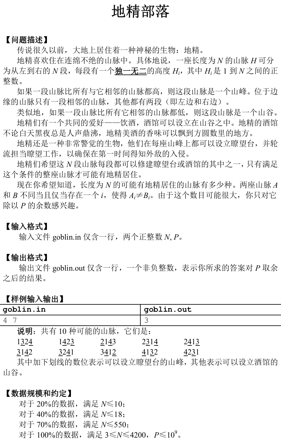 | 题目名称 | 1337. [SDOI 2010] 地精部落 |