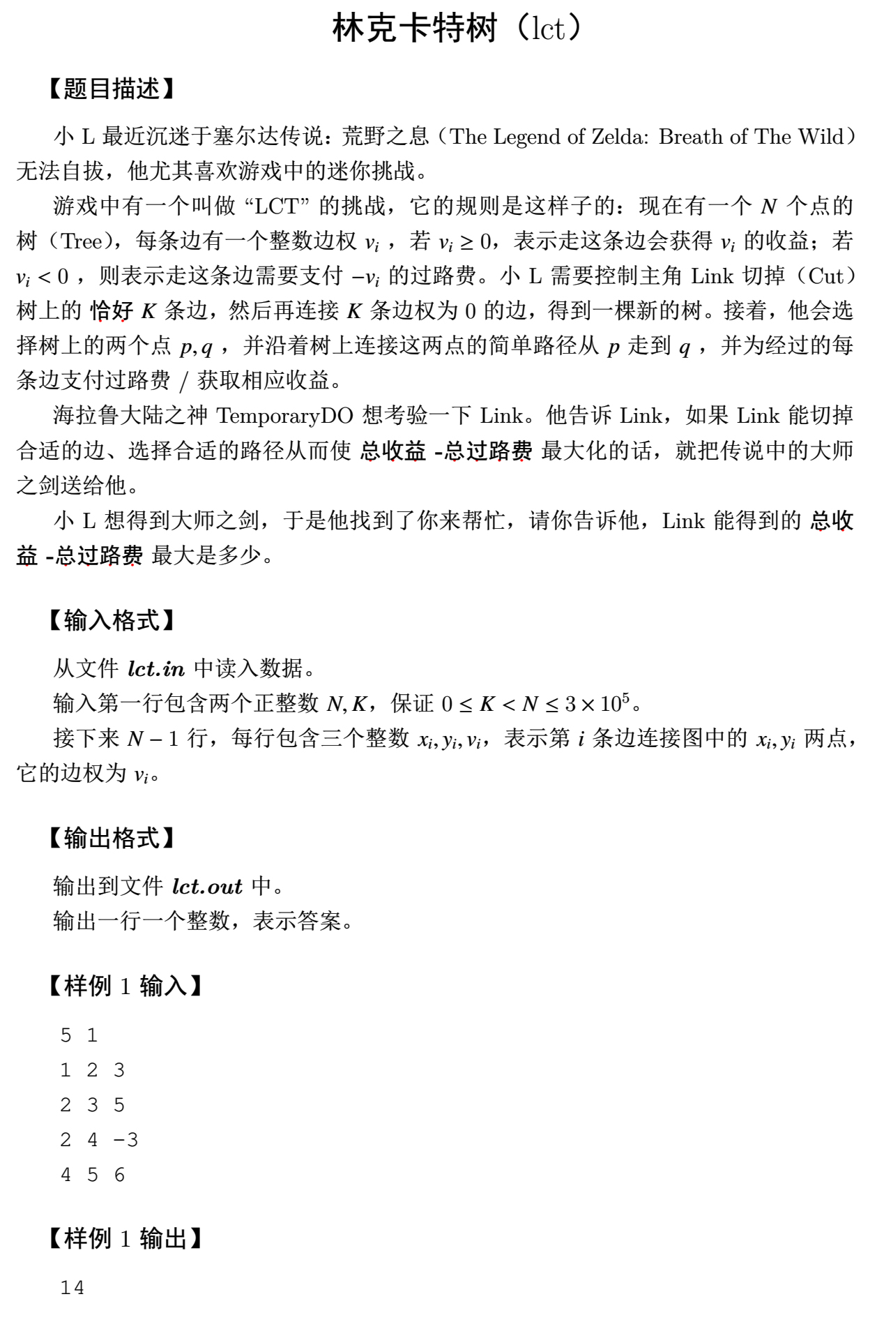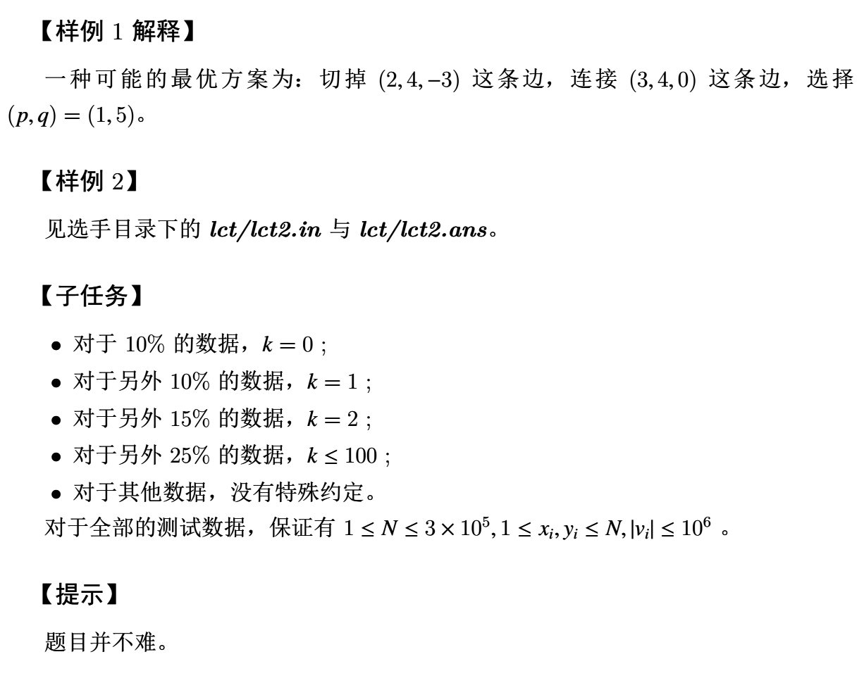 | 题目名称 | 3086. [HEOI 2018]林克卡特树 |