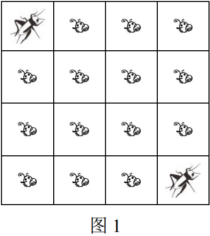 表示一只蛐蛐,那么图 1 描述了一个 n = 4, m = 4, c = 2 的情况。