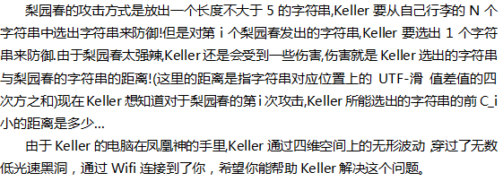 第一行两个数N,Q,表示Keller有N个串同时梨园春有Q次询问: