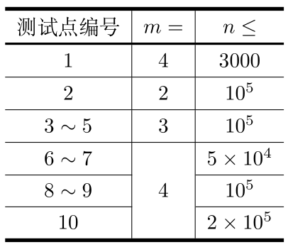 对于所有测试点:$2\leq m\leq 4,1\leq n\leq 2\times 10^5,1\leq a_{i,j}\leq 2\times 10^5$。