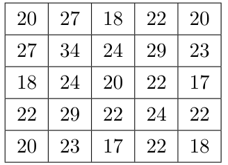 下面给出 $f(i,j)$ 的数表,第 $i$ 行第 $j$ 列表示 $f(i,j)$: